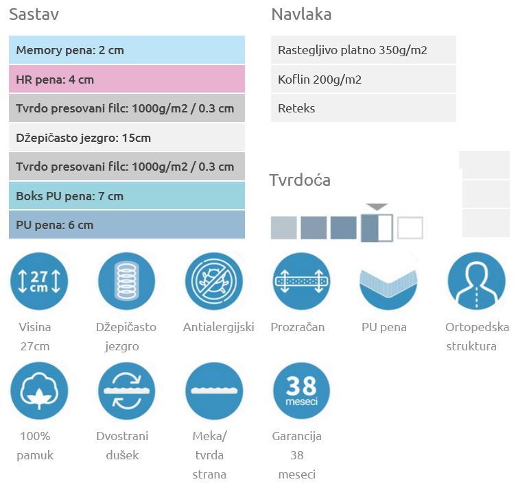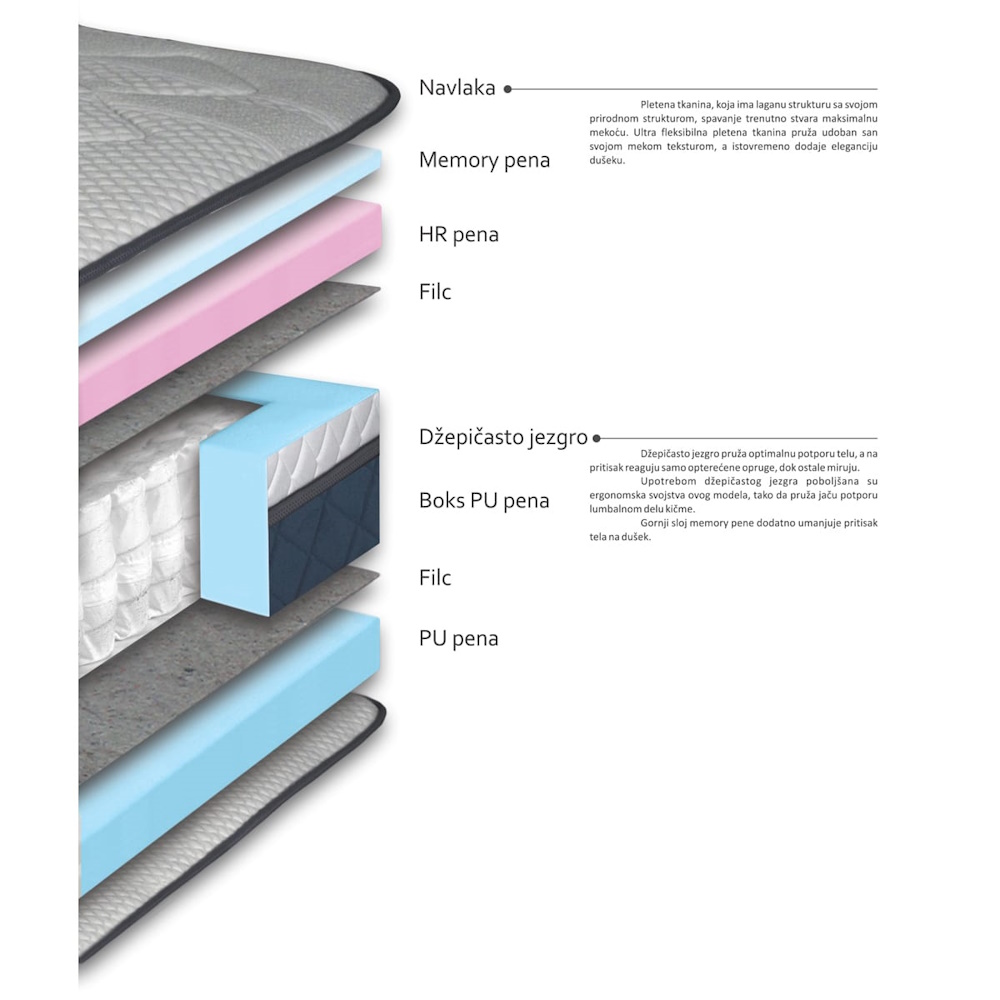 - Kombinacija džepičastog jezgra, HR pene i memorijske pene.